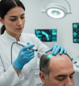ABS-201 dovrebbe essere iniettato nel cuoio capelluto diradato o glabro per rigenerare i capelli.