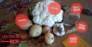 Alcuni cibi ricchi di spermidina (patate, cavolfiore, germe di grano, pane integrale formaggio stagionato, aglio), ne sono ricchi anche i legumi