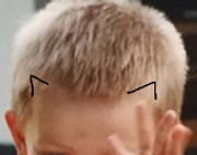 Non ci avevo mai fatto caso ma la cosa curiosa (me ne sono accorto in questi giorni andando a spulciare a casa dei miei tutte le foto di quando ero piccolo) e che un attaccatura del genere lho sempre avuta fin da quando avevo 4 anni, in quasi tutte le foto che mi ricordavo non si capiva dato che mi han sempre tagliato i capelli a caschetto con la frangia che copriva. Solamente in questa foto per sbaglio me li avevano rapati.