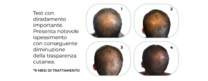 Test clinico su un caso di diradamento importante: le immagini documentano un notevole ispessimento del fusto e la conseguente diminuzione della trasparenza cutanea dopo 9 mesi di trattamento.