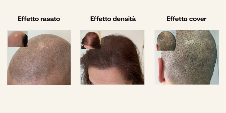 - È una tecnica di camouflage: migliora l’aspetto estetico “simulando” la presenza di capelli.
